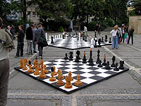 In the interests of livening up the central business district during the summer months, the City Council approved a remarkable project. Five giant chessboards were laid out directly on the main square pavement, along with original wooden chess figures. City residents and others may play at no charge – it is enough to take the chess pieces out of the sheds where they are stored and which are also located in the central district, having your identification card or other proof of identification ready. Besides members of the general public, the figurines are also used by members of the Prievidza chess club, who arrange simultaneous chess tournaments here.